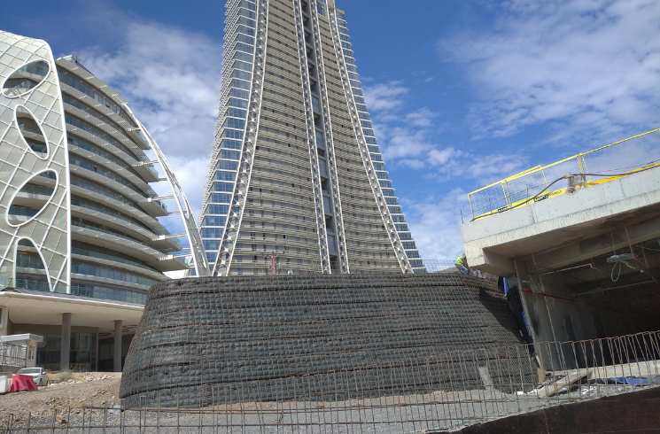 İstanbul Finans Merkezi projesi kapsamında hastanenin çevre duvarları için geosentetik donatılı yeşillenebilir istinat duvarları tercih edilmiştir.